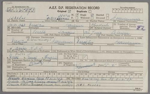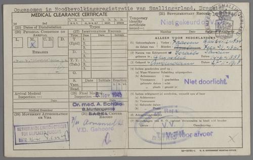 Registratiekaarten (2) op naam van Aleida Israels-de Jong en haar zoon Joseph Israels, november 1945