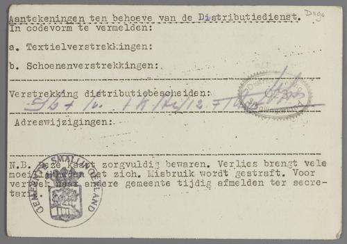Aanmeldingskaart voor gerepatrieerden, op naam van Sander Israels, Smallingerland, november 1945