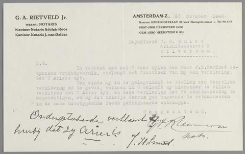 Arierverklaringen (6) van cliënten van notaris Rietveld, 1942