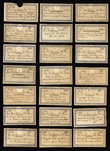 Oude inventariskaartjes (21) van voorwerpen van Ets Haim, uit bezit van David Montezinos