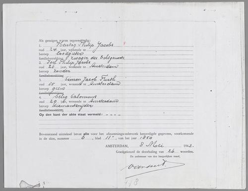 Uittreksel uit een register van huwelijken en echtscheidingen bestemd voor een afstammingsonderzoek, 1943