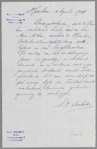 Medische verklaringen (4) m.b.t. gezondheid Max Nathan, 1942-1945