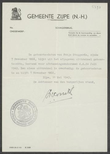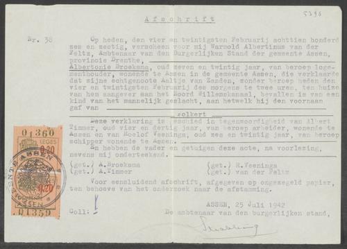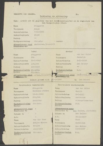 Bewijzen (4) van christelijke afstamming met betrekking tot de schoonfamilie van Mietje Aldewereld, 1942/43