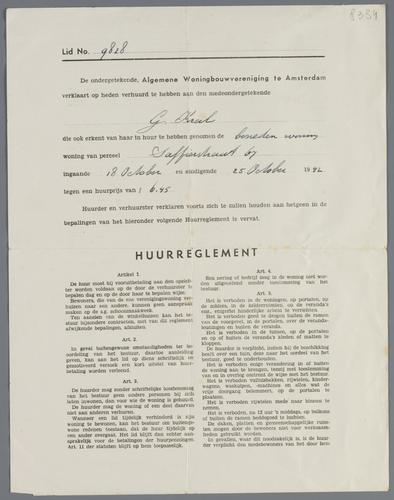 Huurcontract ten name van Gerrit Kreil voor Saffierstraat 67, d.d. circa oktober 1942