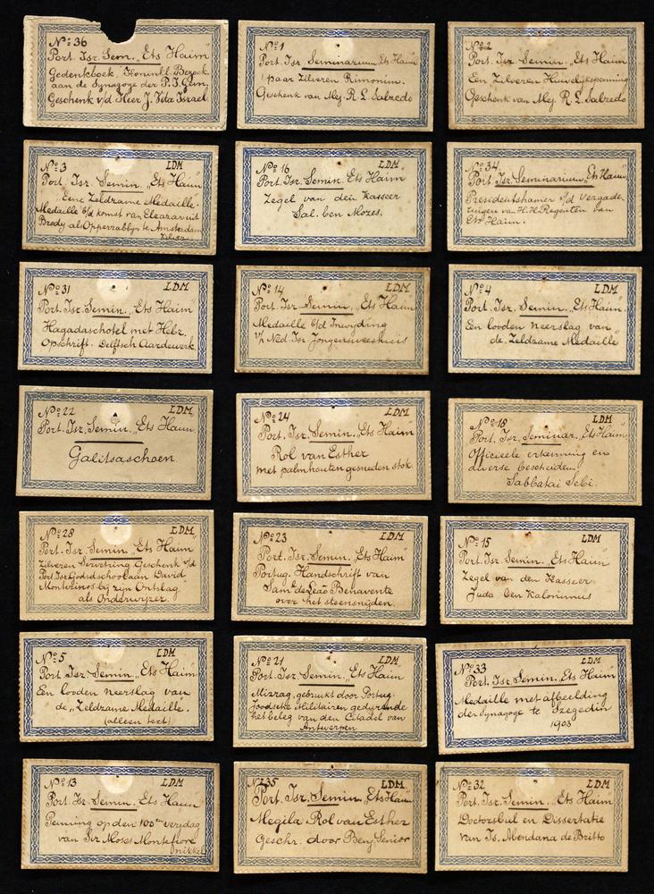 D001962: Oude inventariskaartjes (21) van voorwerpen van Ets Haim, uit bezit van David Montezinos