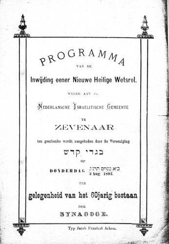 Programma voor den dienst ter gelegenheid der plec ... Amsterdam : Joachimsthal, 1900